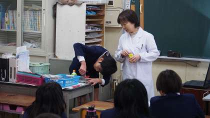 6年生が学校薬剤師の大江先生から正しい薬の飲み方や、「薬物乱用」のお話を聞きました。ジュースやお茶で薬を飲むと、薬の効果が失われることや、正しい使い方をしないと害になる薬があること、覚せい剤などの危険な薬があることを学びました。