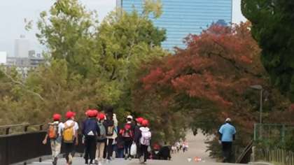 ・時々、みんなで立ち止まって、地図を確認し、行く方向を決めていました。各ポイントで人数確認を行っていましたが、高学年が1年生や2年生のテンポを気づかいながら、全班、時間内にゴールできました。