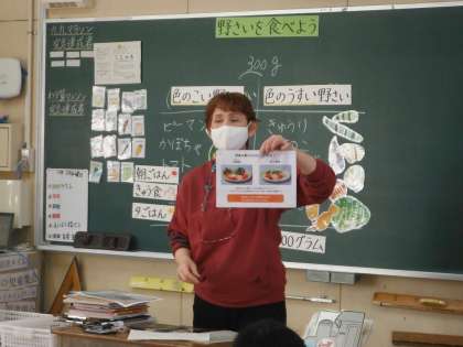 ・色の濃い野菜(緑黄色野菜)と色の薄い野菜(緑黄色野菜以外の野菜・淡色野菜)についてバランスよく、たくさん食べることの大切さを学びました。