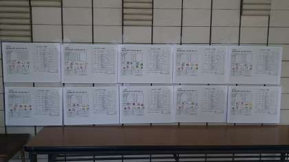 ・それぞれのポイントでゲームをクリアする度にシールが貼られていきます。最高得点は120点で四つの班が獲得しました。下の写真はその中の一つの班のものです。