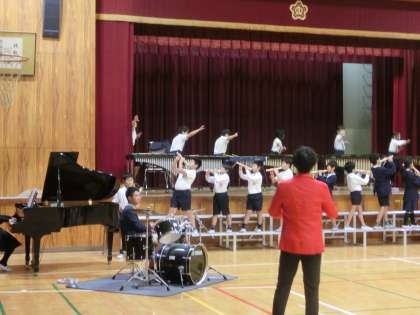 ・5年生の発表はボディパーカッションを披露した後、演奏は「ルパン三世」でした。演奏の中にも振り付けがあり、担任の先生の衣装等、とても見ごたえのある発表でした。クラスのまとまりが感じられる、高学年らしい姿がとても印象に残りました。