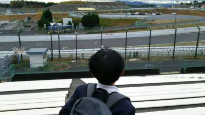 美味しかった昼食を済ませ、午後からも引き続き園内のアトラクションを楽しんでいます。中でも、鈴鹿サーキットだけにレーシング場も今日は開放されていて、子どもたちはその施設の大きさに感嘆の声をあげていました。