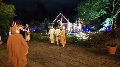 美味しい夕食を満喫したあと、ホテル前の広場に出て、写真撮影を行いました。