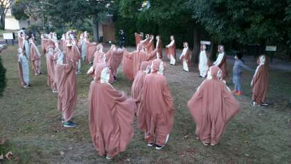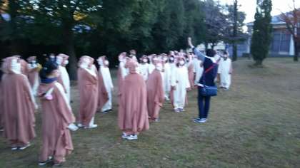 ただ朝の冷たさは大阪以上なので、朝の集いでは、昨日も大活躍した可愛い外套を身につけて集合する子どもが多かったです。