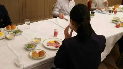 昨日の夕食と同様に、隣同士の距離をとり、正面も1つずつズレて座りながらホテルでの最後の食事を楽しみました。