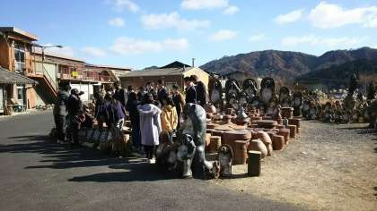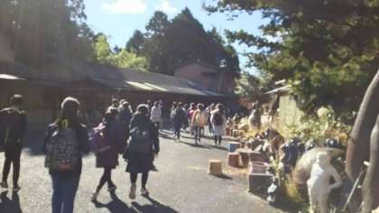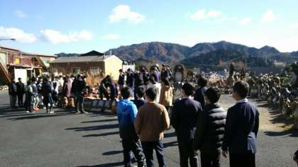 焼き物体験に向かう前に、集合写真を撮りました。