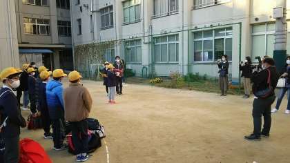 予定より、少し早く、6年生が帰校しました。運動場に集合し、たくさんの保護者のみなさんや本校の先生方が見守る中、帰校式を行いました。全員が参加することができ、すばらしい思い出をたくさん作ることができました。