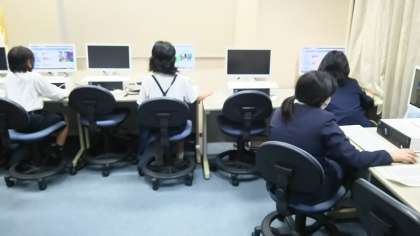 ・写真は上からダンスクラブ、パソコンクラブ、科学クラブです。科学クラブはお手製のブーメランを運動場で飛ばしているところです。