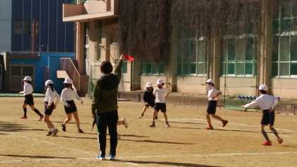・昨日〔12月18日(金)〕の体育の授業風景です。色々なルールの中で、子どもたちは「おにあそび」をしました。この日も寒い一日でしたが、子どもたちは元気いっぱいでした。