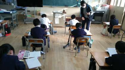 ・昨日〔12月23日(水)〕の1校時、国語の授業でした。ひらがなだけの問題を見ながら、答案用紙に漢字が入った文章を丁寧に書いていきました。