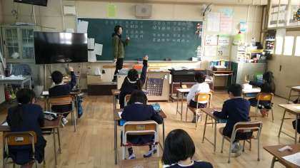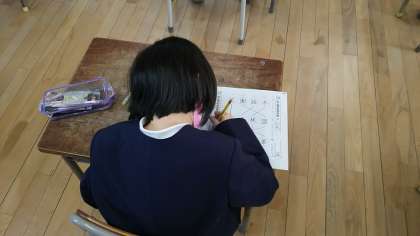 ・昨日〔12月23日(水)〕の1校時、2年生も国語の授業でした。これまでに習った2年生の漢字を復習していました。漢字をへんやつくり等でバラバラにしたものを組み立てたり、同じ部分(例えば「木」)がある漢字を集めたりするゲームを行いながら、楽しくみんなで復習しました。