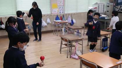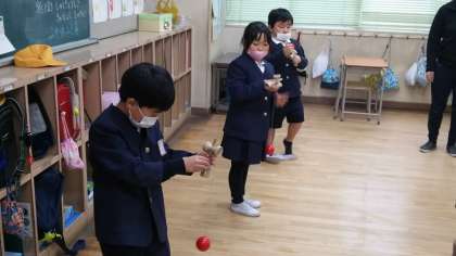 ・12月24日(木)の5校時、1年生は授業の中で「けん玉」に取り組んでいました。みんな、一生懸命でした。どんな技ができたか、どんな技に挑戦したのか等、お家でお話をしてください。