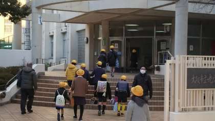 ・子どもたちが登校し、防災学習をまもなくスタートします。しっかりと学習したいと思います。