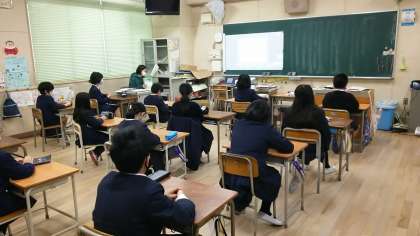 ・新しいお掃除ロボットが二台、校内で働いてくれています。一台は先輩の「くろくん」と同じタイプのロボットで「くろくん」よりも色が黒いです。もう一台は講堂でもお掃除できる大きなロボットです。掃除の時間等でみんなに紹介しますので、「くろくん」の時と同じ様に名前を募集したいと思います。みんなで考えてあげましょう。