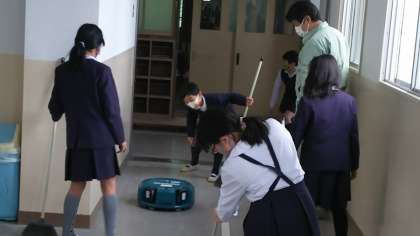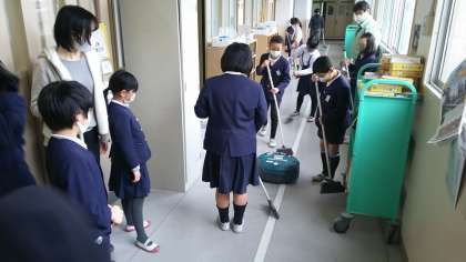 ・昨日〔2月17日(水)〕の清掃時間、「くろくん」を先頭に3台のロボットたちは中学年の教室・廊下のお掃除のお手伝いをしました。ほうきで集めたごみを「くろくん」がスポットモードできれいに吸い取る姿を見て、「ちりとり、いらんなあ。すごいすごい」と驚いていました。