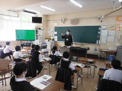 ・3月1日(月)の3校時、校長先生が昔のお金を説明しました。江戸時代の寛永通宝や明治、大正、昭和のコインやお札の実物を授業で使いました。子どもたちは一つ一つを手に取って、表も裏もひっくり返して、興味深く見ていました。100円札については透かしてみたり、「下と上に100と百の字が並んでる!」など、色々な発見をしていました