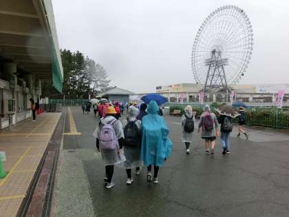 ・昼食後、広場で元気よく遊びました。また、雨が降り出しましたので、集合し、予定通りの時刻に帰校しました。