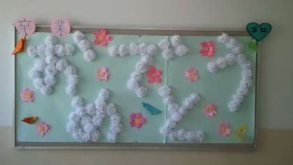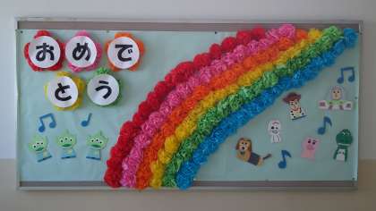 ・校内掲示が6年生の卒業のお祝い一色に飾られています。どの掲示も温かい気持ちがたくさん込められています。