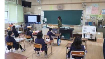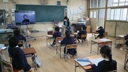 ・今朝もリモート授業のシステムを使って、各教室に分かれて、全体朝会を行いました。まず、全員で朝の挨拶を行ったあと、校長先生のお話があり、続いて、当番の先生から今月の生活目標のお話がありました。