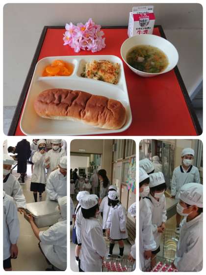 今日のメニューは、マカロニグラタン・レタスのスープ・みかん(缶)・さつまいもパン・牛乳でした。マカロニグラタンは、鶏肉とタマネギもたくさん入っていてボリュームがありました。味つけはクリーミーで、とてもおいしかったです。レタスのスープは、チキンブイヨンのスープで、あっさりしていました。レタスの食感かシャキシャキしていました。今日もおいしくいただきました。(*^-^*)