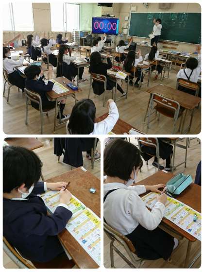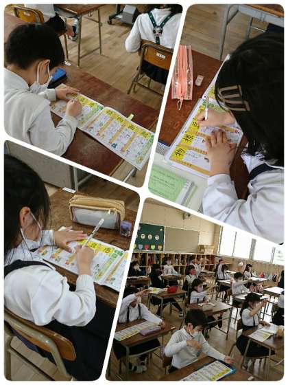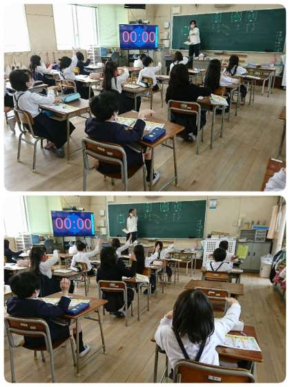 3年生の教室では、新出漢字の書き順・読み方・使い方などの学習をしていました。書く時には、背中をピン!足の裏をしっかり床につけて、よい姿勢を心がけるように担任の先生がお話していました。子ども達は、姿勢を正してとても丁寧な字で、練習をしていました。しっかり覚えて活用できるようにしていきましょうね。
