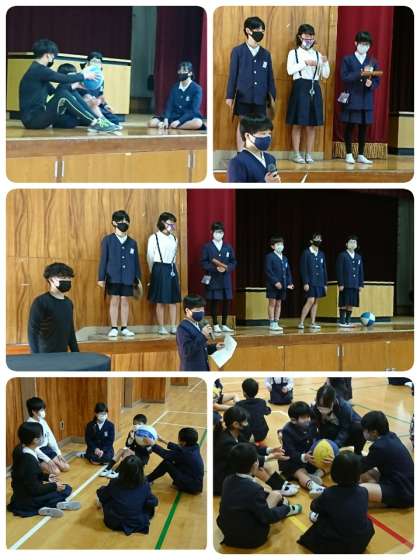 今日は、1年生と初めて一緒のたてわり班での集会活動「どうぞよろしくね集会」を行いました。司会・進行の6年生が、とても分かりやすく活動内容を説明しました。