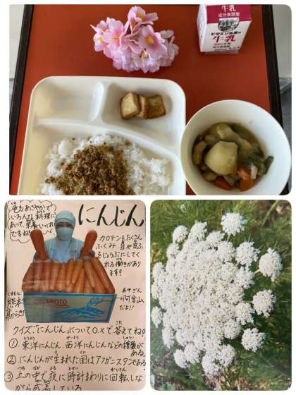 またにんじんの花も写真で紹介しましたが、ほとんどの児童が初めて見る花の様子に驚いていました。