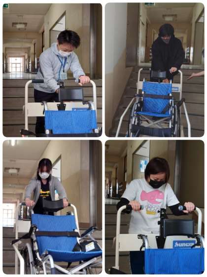 放課後、階段昇降機の研修会を実施しました。なかなか難しいですが、実際に操作した先生達は使い方を覚えることができました。これから確実に安心して使えるまで、何回も研修をしていきます。