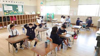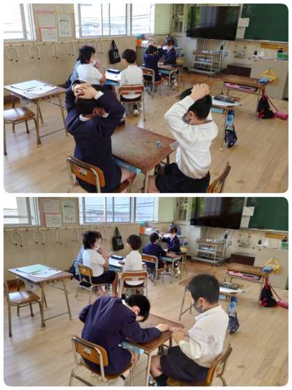 2年生は、朝のEnglish timeで、アルファベットのクイズをしていました。先生が言ったアルファベットが、黒板に書いてある文字と一致したときに、机の上に置いてある「けしゴム」をさっと取るゲームです。ペアのお友達と一緒にゲームを楽しんでいました。\(^o^)/