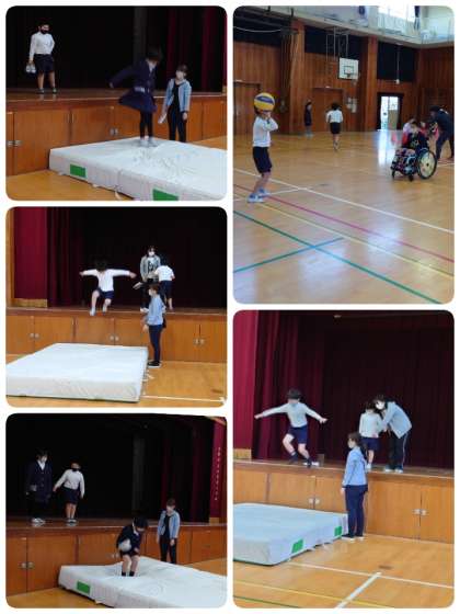 1時間目に、なかよし学級の子ども達が、体育館で運動あそびをしていました。6年生がリーダーとして活躍していました。準備運動の後、トランポリンやセーフティマット・ボール・一輪車・ろくぼくなど、自分がしたい遊びを楽しみました。本当にみんななかよしです。安全にも気をつけながら楽しい時間を過ごしました。高学年が誰にでも優しく接している姿がとてもステキでした。