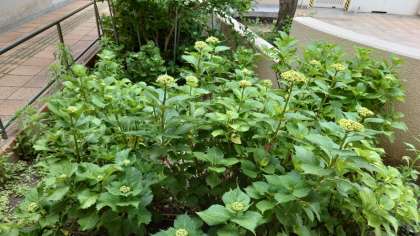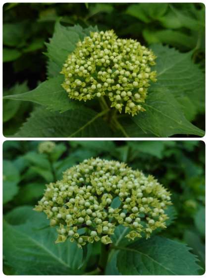 先日、つぼみがついてきましたとHPでお知らせしていた玄関のアジサイ。今は、こんなにつぼみが大きくなってきました。つぼみの先の色が変わってきています。来週には「花が咲きました」のお知らせができるかな?