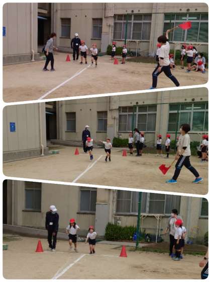 「位置について、よ〜い、ドン!」とても楽しそうに走り切っていました。