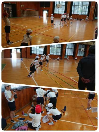 今日は4年生が、講堂で体力テストの1つである20mシャトルランに挑戦しました。