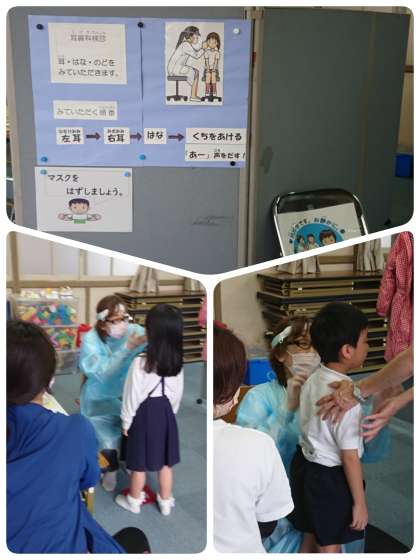 耳→鼻→ノドの順番に耳鼻科校医の先生に診てもらいましたが、子ども達みんな行儀よく並び、スムーズに進めることができました。