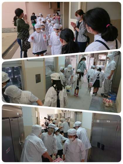 特に1年生にとっては給食で初めてのバナナだったので、サンプルケースに置かれたバナナを見て、「え、1本全部食べていいんや!」と歓声を上げていました。