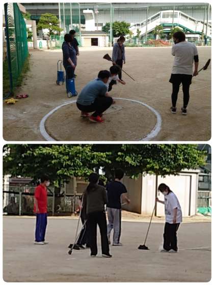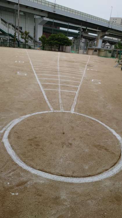 昨日、メンター研修会の後、ソフトボール投げのライン引きをしました。
