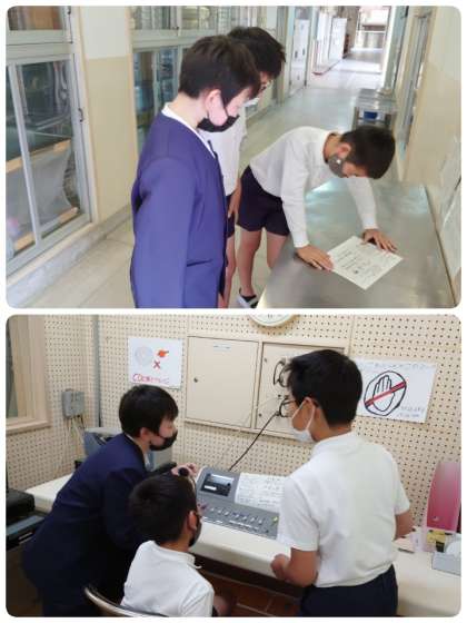 給食が始まる前に、放送委員会と健康委員会・給食委員会の子ども達が毎日放送を流しています。