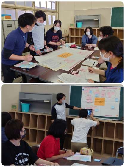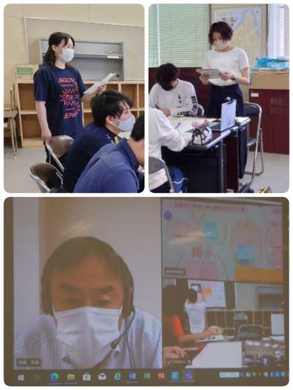 放課後、今日の授業について討議会をしました。指導してくださったのは、教育センターの高砂先生です。コロナの関係で、今日の授業の見ていただくのも指導していただくのもオンラインで行いました。