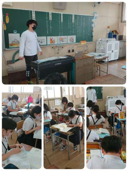 単元名は「世界でいちばんやかましい音」で、ベンジャミン・エルキンという外国人作家が書いた物語文です。今日の学習では、場面ごとの展開を学習プリントにまとめながら、自分でまとめたり、友達と意見交流したりしました。