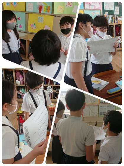 今日の1時間目、5年生が2つの教室に分かれて国語科の学習に取り組みました。