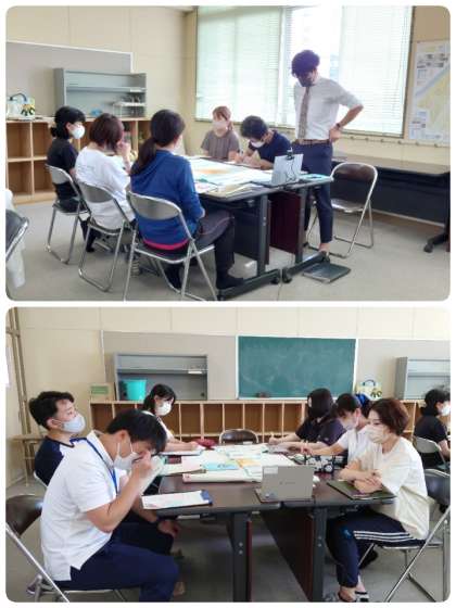 今日の5年生の授業について、研究討議会を行いました。今日の指導も教育センターの高砂先生です。子ども達の話し合いや学習に取り組む姿勢等についてたくさんほめていただきました。先生達の意見交流もとても活発に会が進みました。高砂先生から子ども達のそれぞれの意見をどのようにまとめていったらよいのかのアドバイスもいただきました。本日もご指導、ありがとうございました。