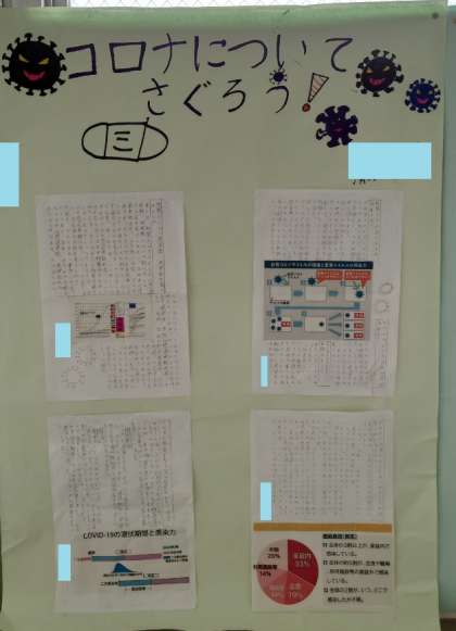 写真は「地震とくらし」「コロナについてさぐろう!」「骨折マル秘話」です。