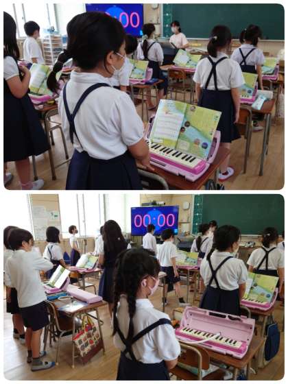 3年生の教室から、きれいな歌声が聞こえてきました。めあてが、「音の高さに気をつけて、明るい声で歌いましょう。」です。伴奏をしっかり聴いて、声を響かせて歌っていました。聴いていると気持ちよくなってくるような歌声でした。♪ (´▽`)