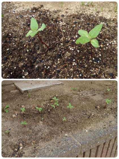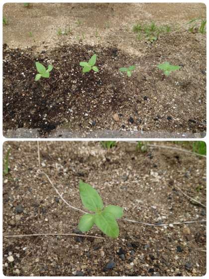 講堂横の花壇にヒマワリの芽がたくさん出てきました。本葉も出てきました。子ども達が水やりを毎日がんばっています。(*^^)v