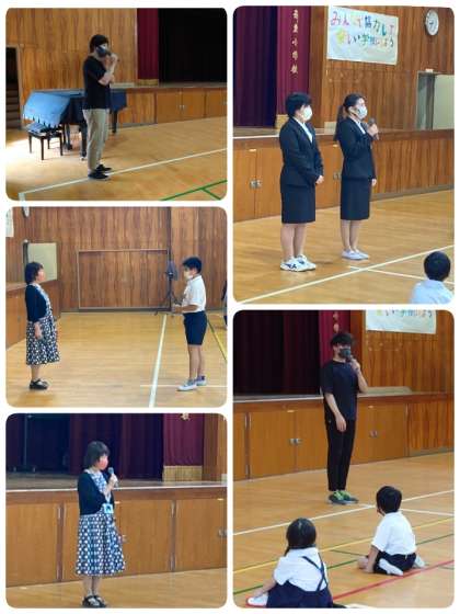 *今日からインターシップ実習で、毎週月曜日に来ることになった大学生2名を紹介しました。子ども達は「よろしくお願いします!」としっかりとあいさつできました。