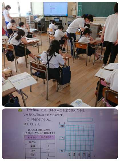 今日の3年生の算数では、ぼうグラフのかき方について学習しました。