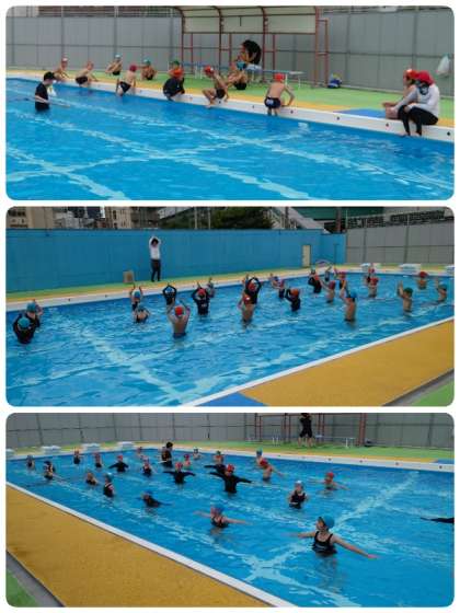 子ども達が待ちに待ったプール開き。朝からご機嫌な顔をして登校してくる子どもがたくさんいました。