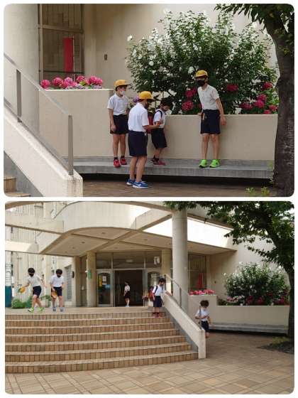 満開になったムクゲの花の下で、朝から仲良く遊んだりお話をしたりして過ごしている子ども達です。転校してきた1年生も上級生と一緒に過ごし、すっかり東っこの仲間になりました。(*^_^*)