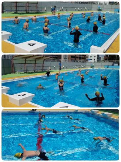 6年生のプール開きは、昨年度も水泳学習をしているので、感染症対策についてもよく理解できていて、とってもスムーズに学習が進みました。いろいろな泳ぎ方を思い出しながら、クロールの上手な息継ぎの仕方まで練習しました。子ども達は、先生の指示をしっかり聞きながら、とても意欲的に泳いでいました。水からあがってきたときの笑顔が印象的でした。