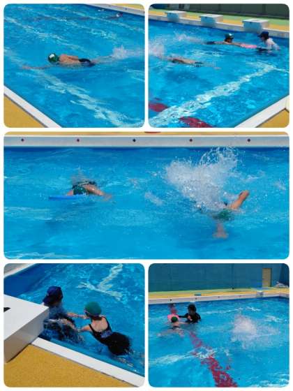 5年生は2年ぶりの水泳学習。先生と約束事をOKのサインを1回ずつ出して確認していました。水に入ると楽しくてワクワクしている気持ちが手に取るように伝わってきました。5年生も友達との間隔をとることやおしゃべりをしないことなど、自分達で考えて行動することができていました。さすが高学年ですね。